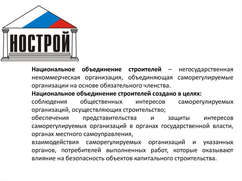 Национальное объединение строителей – негосударственнаянекоммерческая организация, объединяющая саморегулируемые
