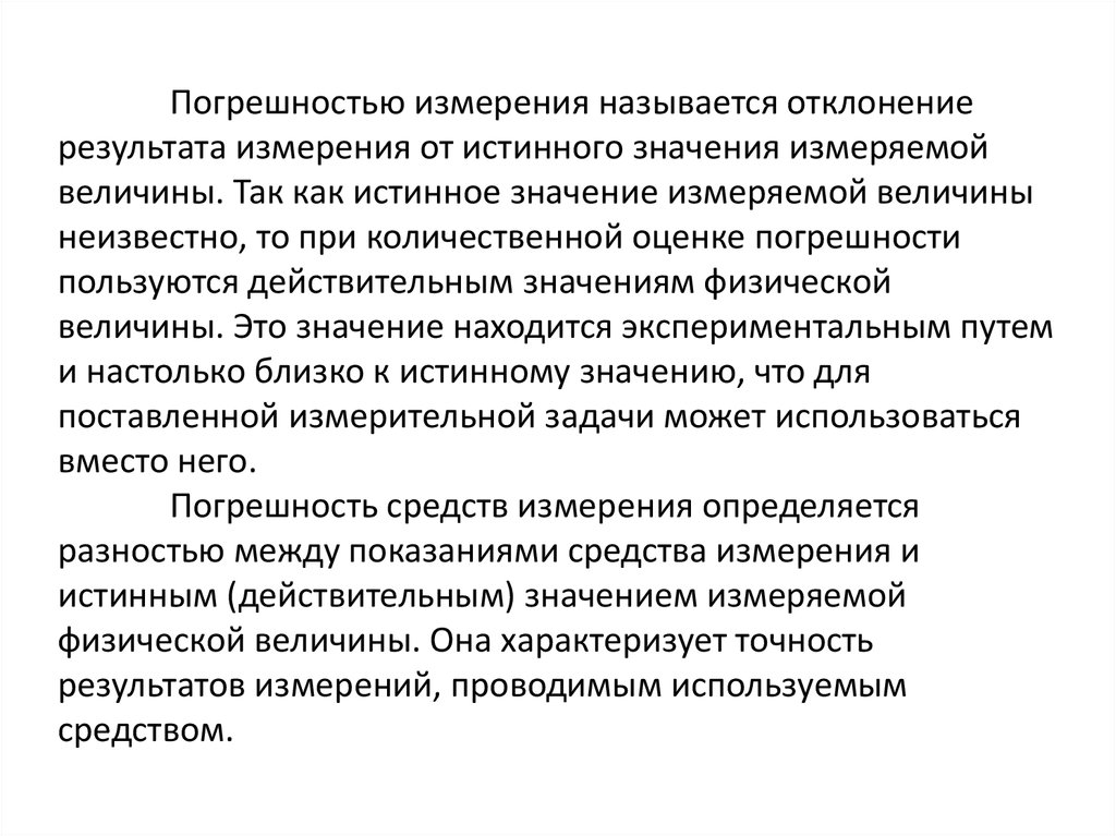 Погрешностью измерения называется отклонениерезультата измерения от истинного значения измеряемой
