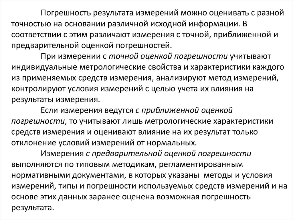 Погрешность результата измерений можно оценивать с разнойточностью на основании различной исходной информации. В