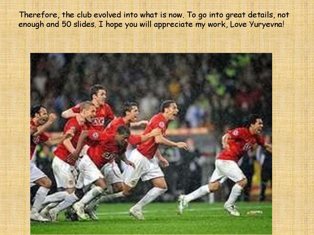 Therefore, the club evolved into what is now. To go into great details, notenough and 50 slides. I hope you will appreciate my work, Love Yuryevna!