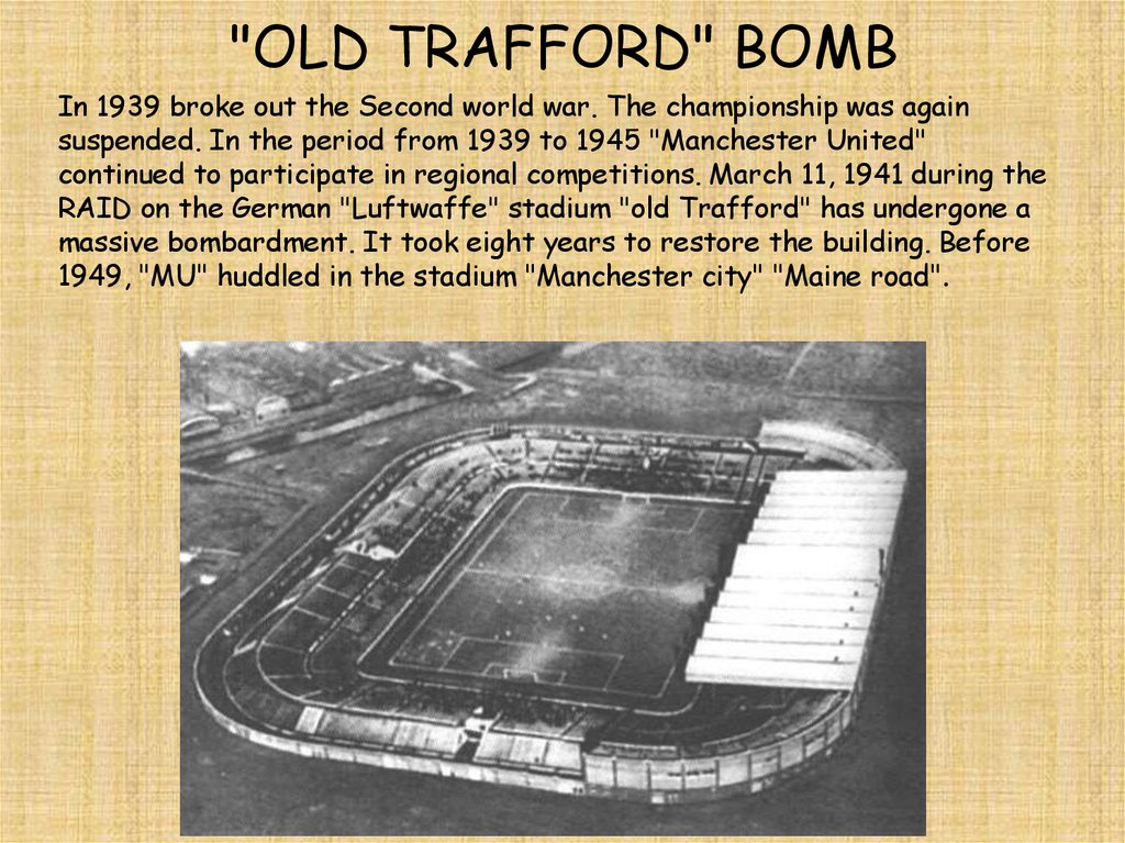 "OLD TRAFFORD" BOMBIn 1939 broke out the Second world war. The championship was again