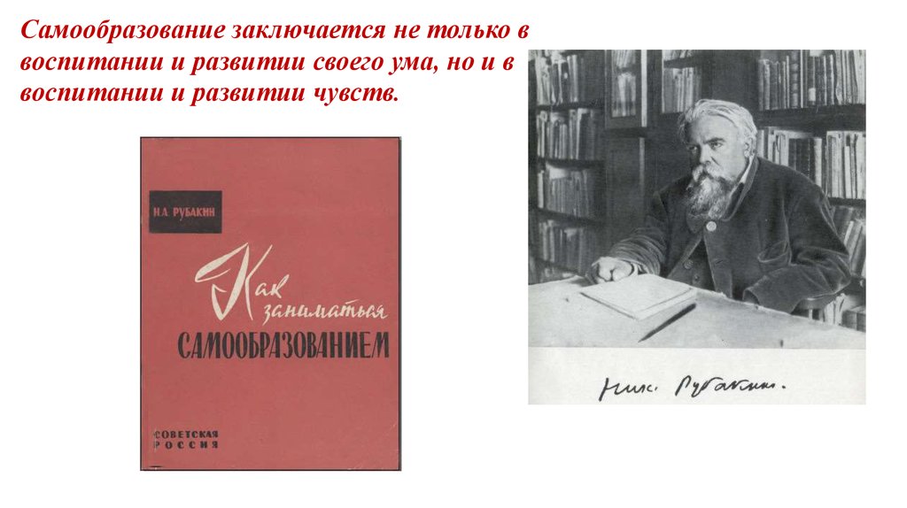 Самообразование заключается не только ввоспитании и развитии своего ума, но и в