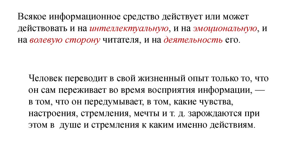 Всякое информационное средство действует или можетдействовать и на интеллектуальную, и на эмоциональную, и