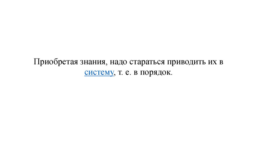 Приобретая знания, надо стараться приводить их всистему, т. е. в порядок.