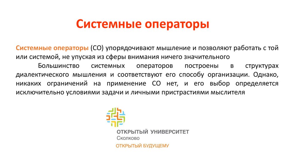 Системные операторыСистемные операторы (СО) упорядочивают мышление и позволяют работать с той