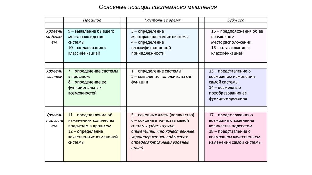 Основные позиции системного мышленияПрошлое