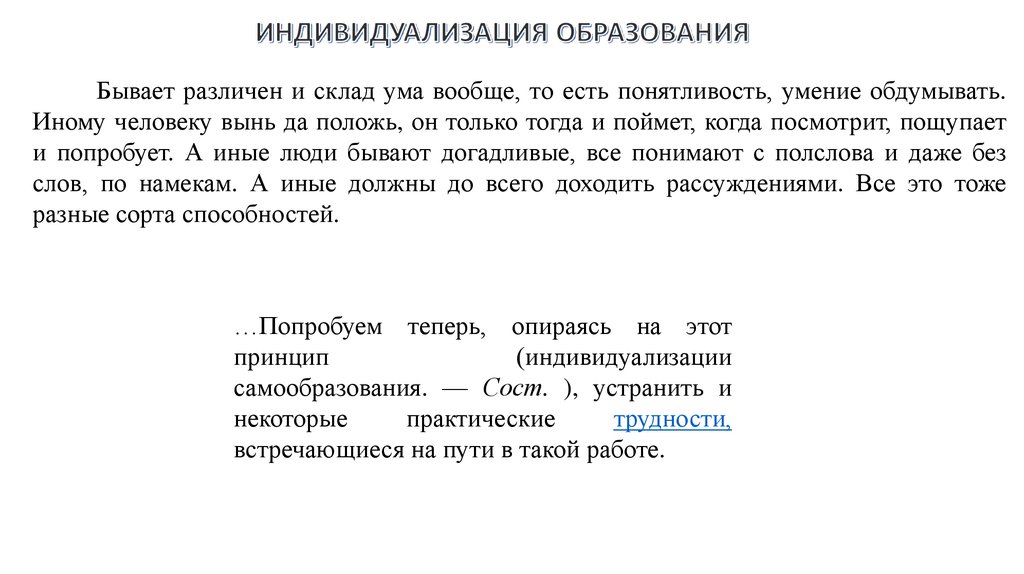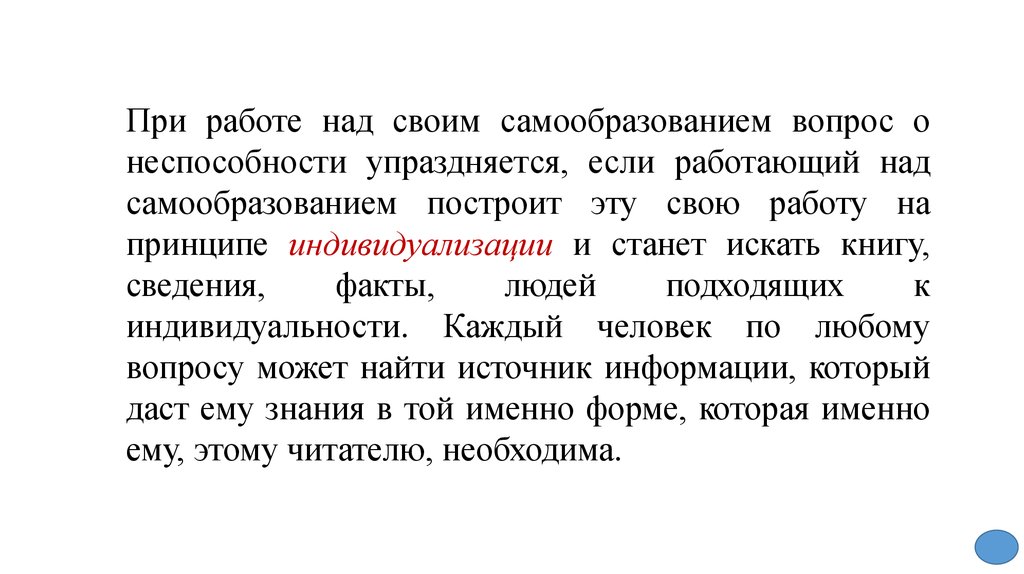 принципе индивидуализации и станет искать книгу,