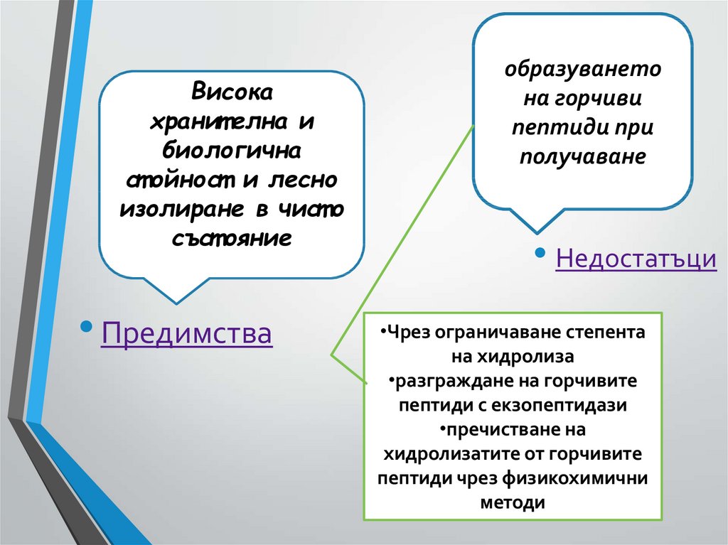 Получаване на хидролизати от хранителни протеини, казеин и суроватка. Приложение в ХВП
