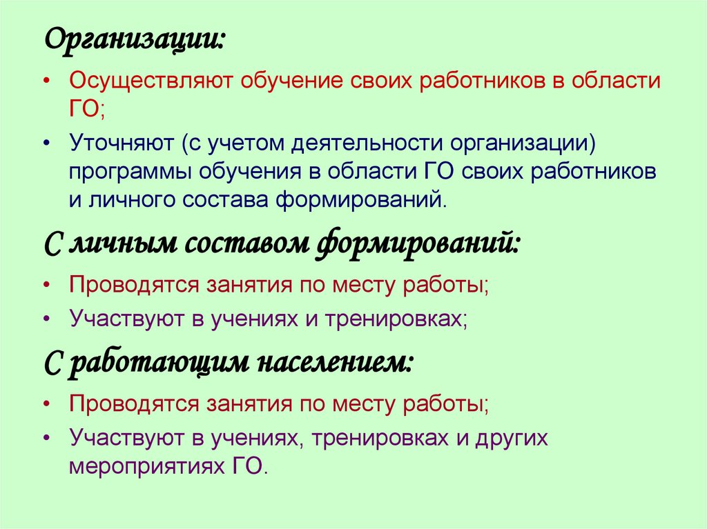 Организация обучения работающего населения на объекте экономики