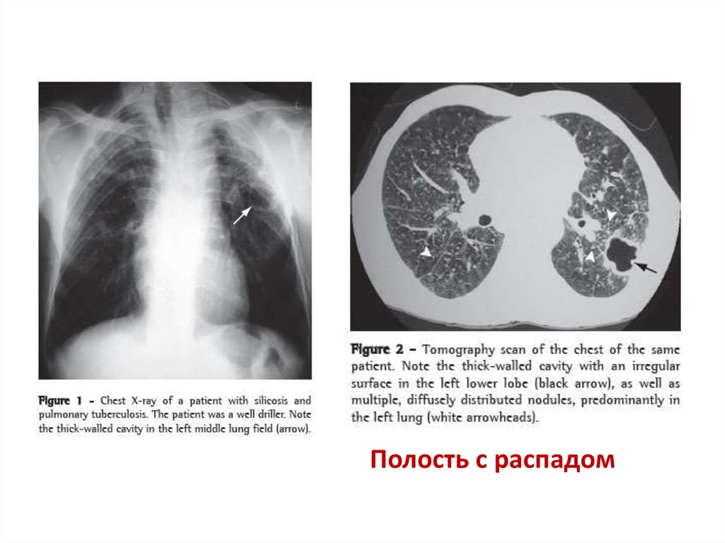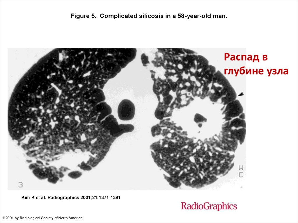 Figure 5. Complicated silicosis in a 58-year-old man.Распад в