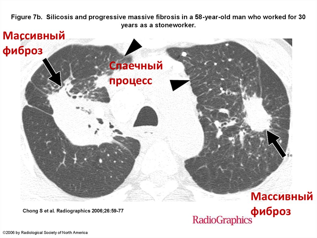 Figure 7b. Silicosis and progressive massive fibrosis in a 58-year-old man who worked for 30years as a stoneworker.