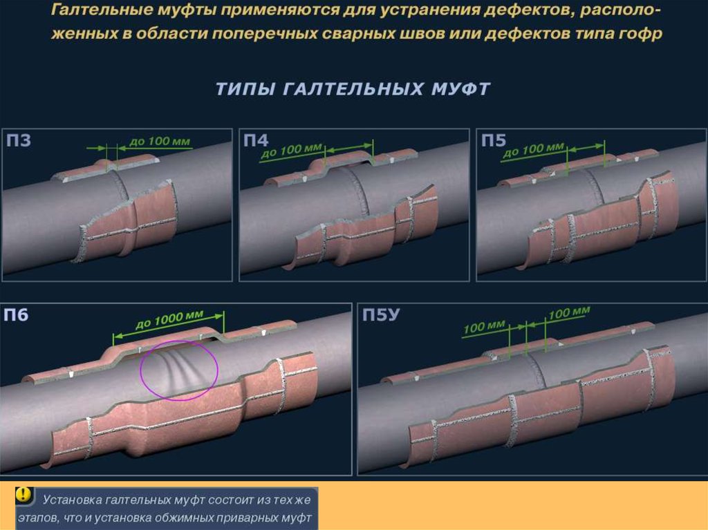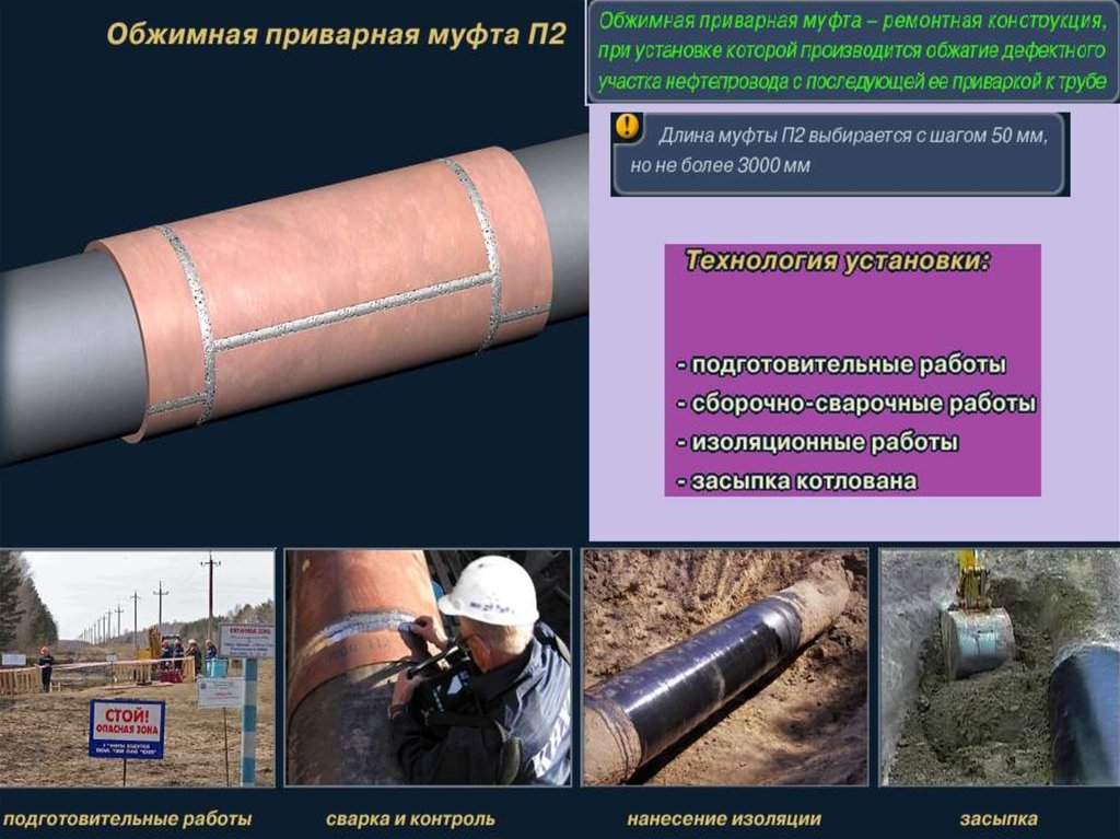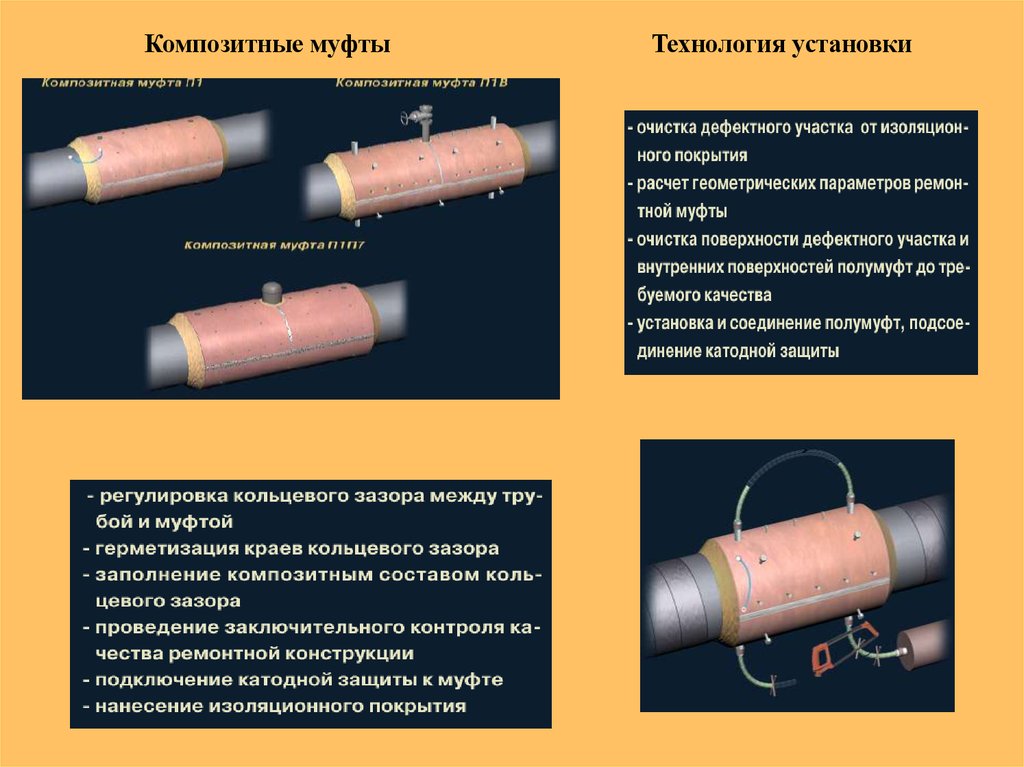 дефектных участков МН методом установки ремонтных конструкций.