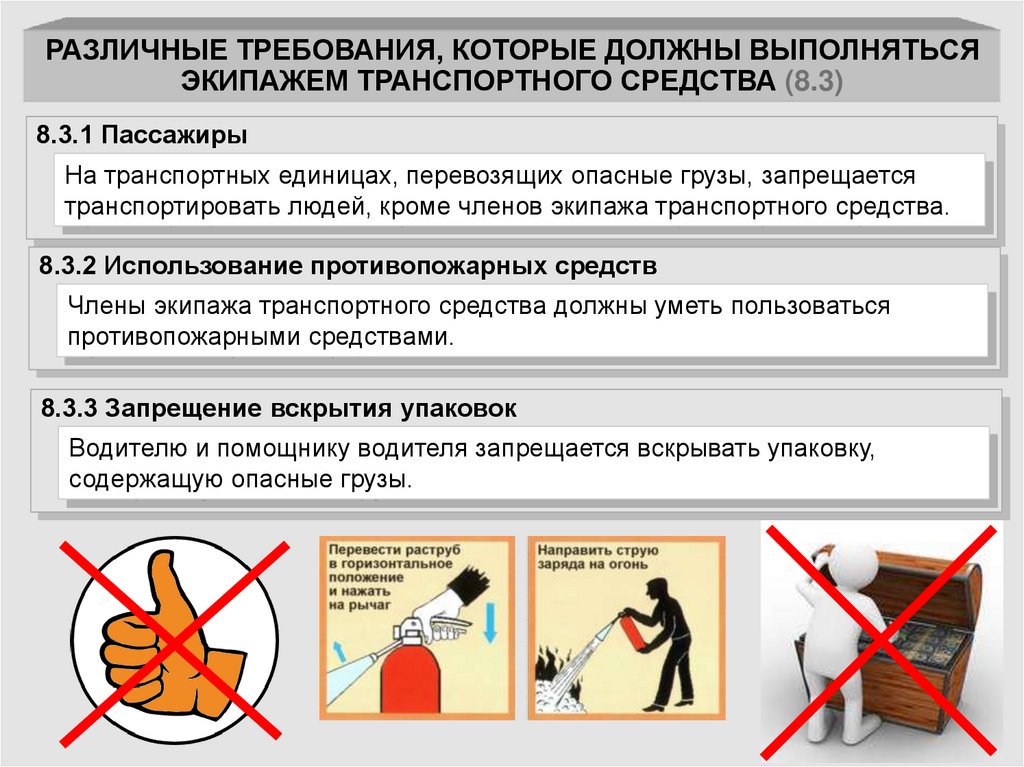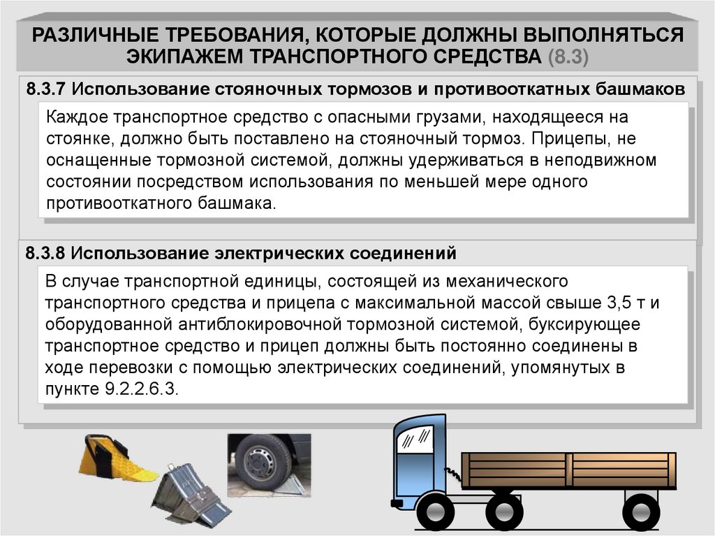 РАЗЛИЧНЫЕ ТРЕБОВАНИЯ, КОТОРЫЕ ДОЛЖНЫ ВЫПОЛНЯТЬСЯЭКИПАЖЕМ ТРАНСПОРТНОГО СРЕДСТВА (8.3)