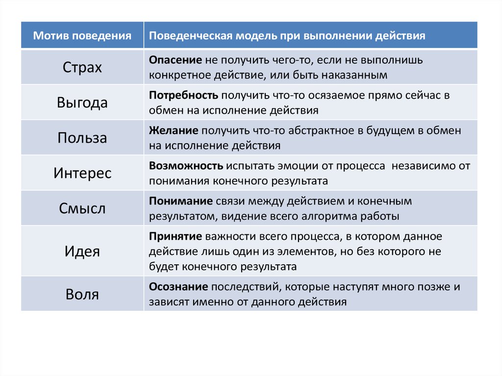 Мотив поведенияПоведенческая модель при выполнении действия