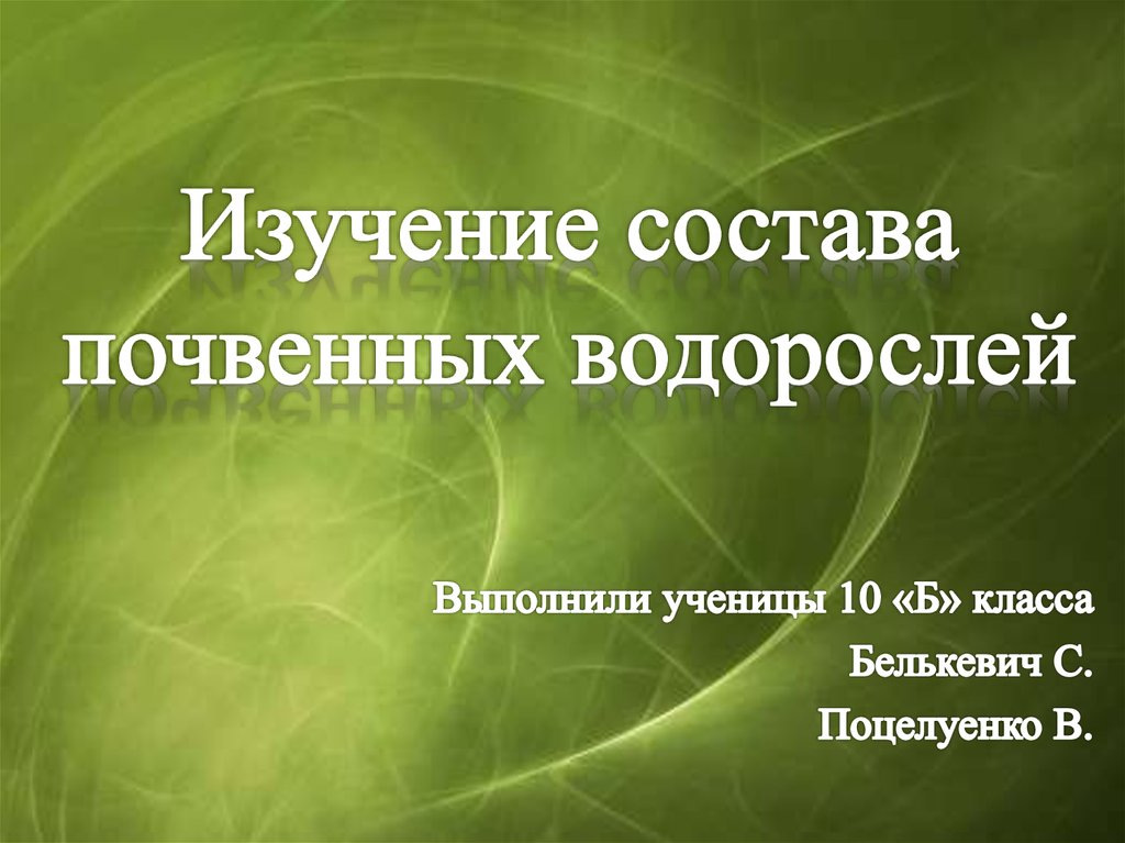 ВОГО СОСТАВА ПОЧВЕННЫХ ВОДОРОСЛЕЙ