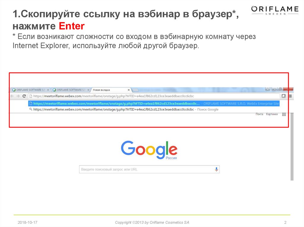 1.Скопируйте ссылку на вэбинар в браузер*,нажмите Enter