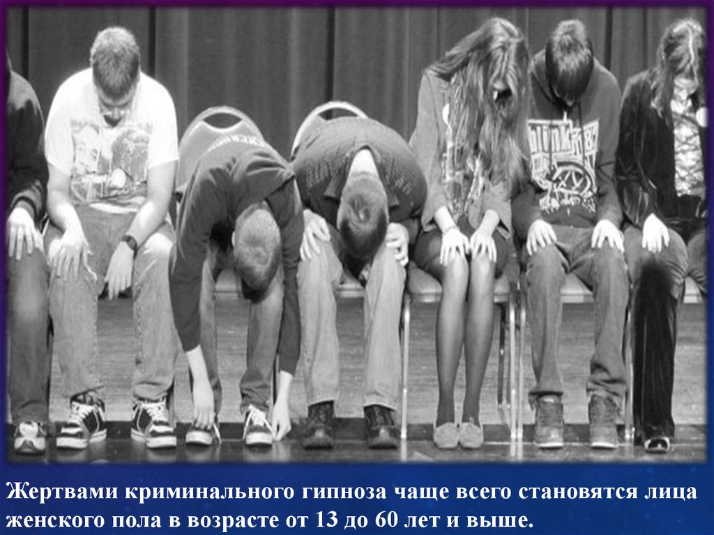 Жертвами криминального гипноза чаще всего становятся лицаженского пола в возрасте от 13 до 60 лет и выше.