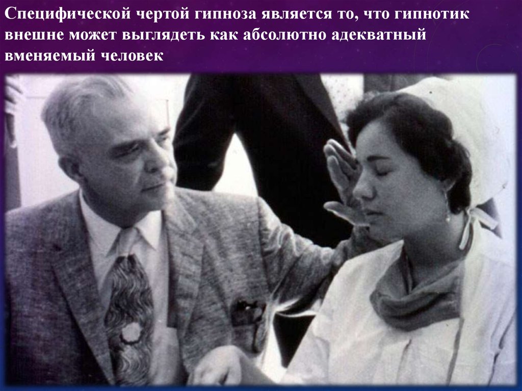 Специфической чертой гипноза является то, что гипнотиквнешне может выглядеть как абсолютно адекватный