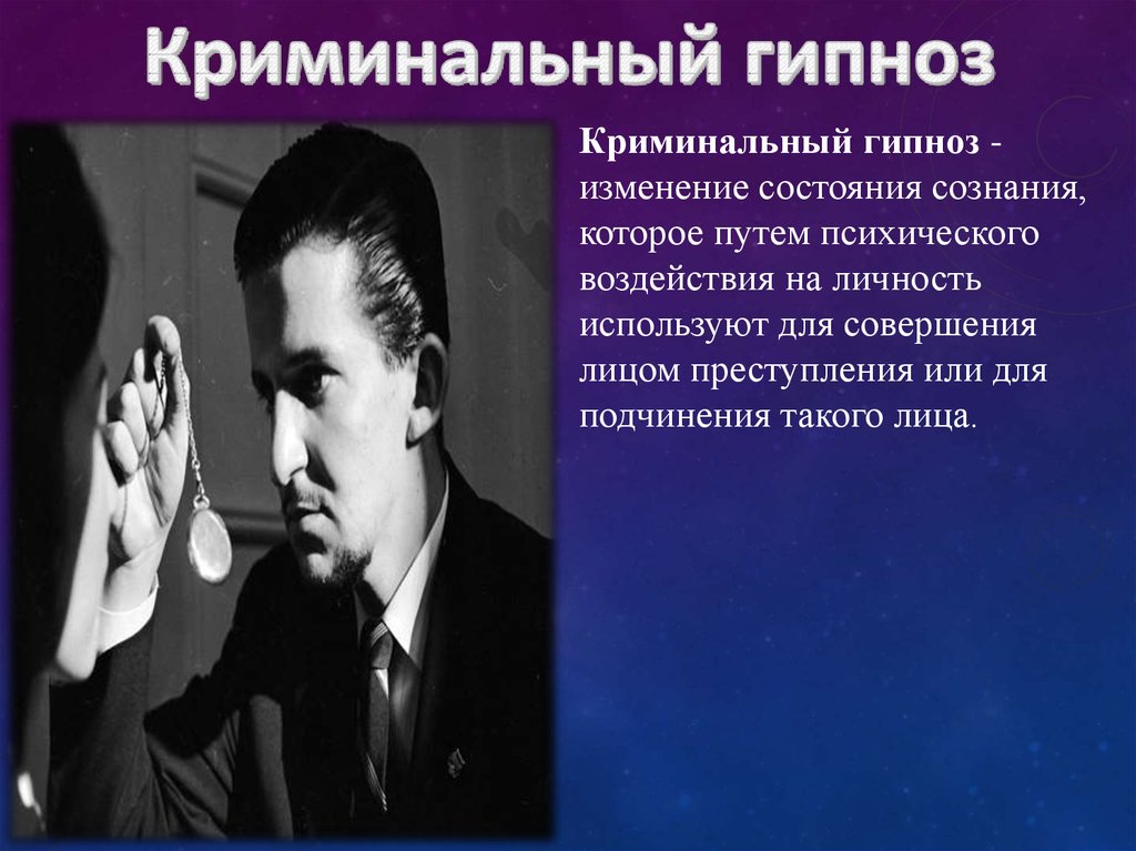 Криминальный гипноз изменение состояния сознания,которое путем психического