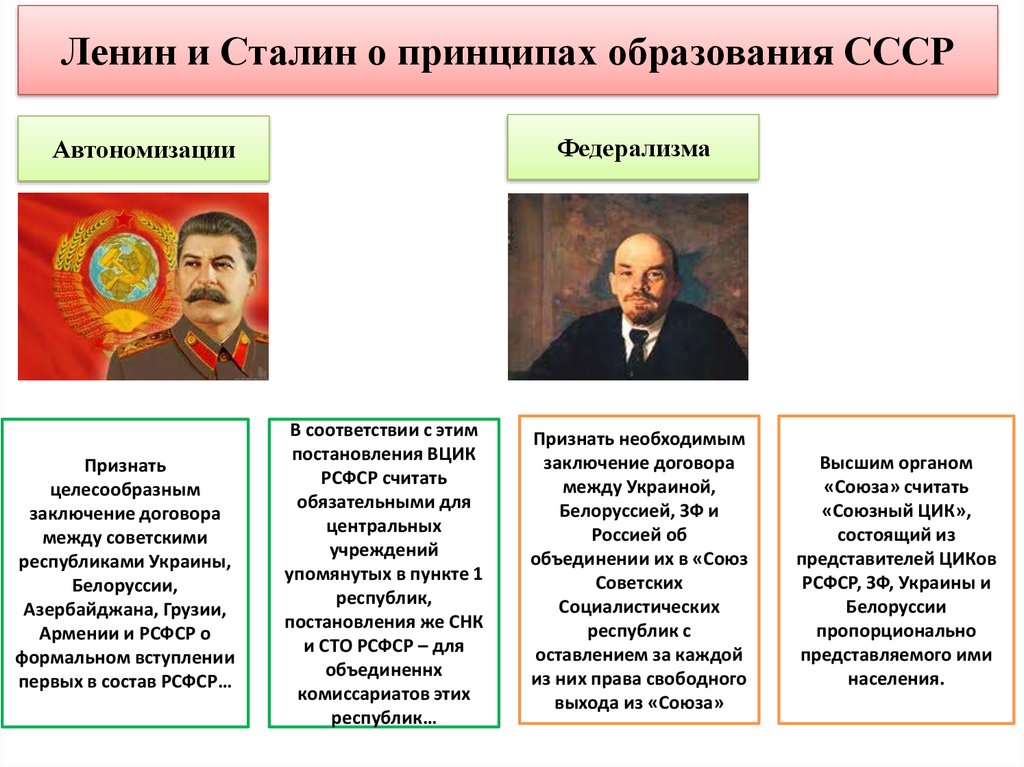 Ленин и Сталин о принципах образования СССРФедерализма