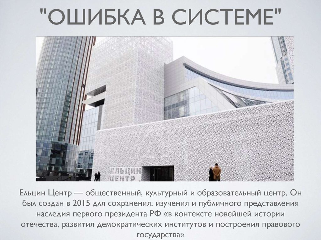 "ОШИБКА В СИСТЕМЕ"Ельцин Центр — общественный, культурный и образовательный центр. Он