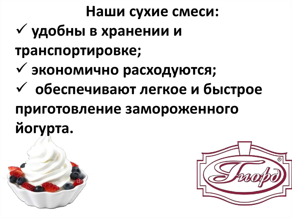 Коммерческое предложение: сухие смеси для приготовления замороженного йогурта