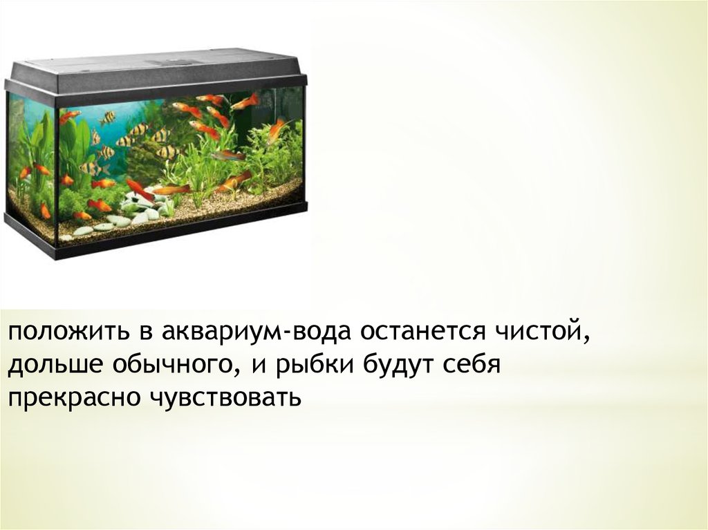 положить в аквариум-вода останется чистой,дольше обычного, и рыбки будут себя