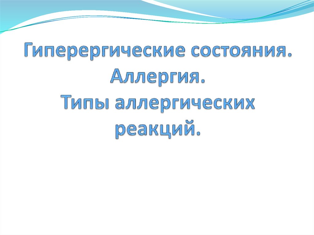 1. Гиперергические состояния. Аллергия. Типы аллергических реакций.