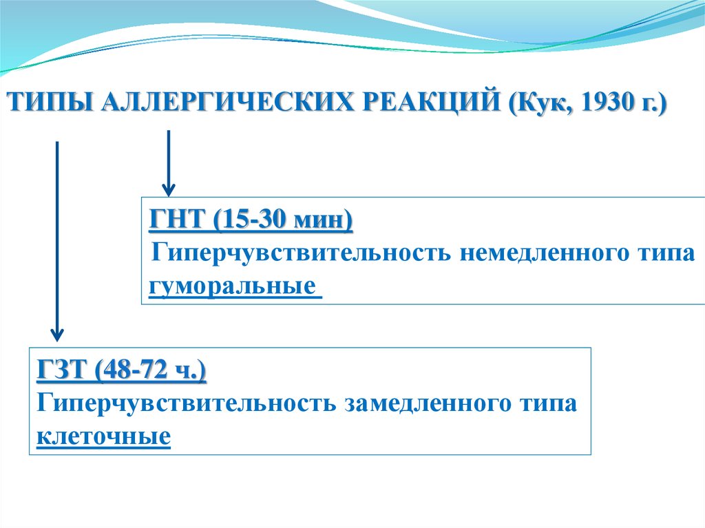 ТИПЫ АЛЛЕРГИЧЕСКИХ РЕАКЦИЙ (Кук, 1930 г.)ГНТ (15-30 мин)