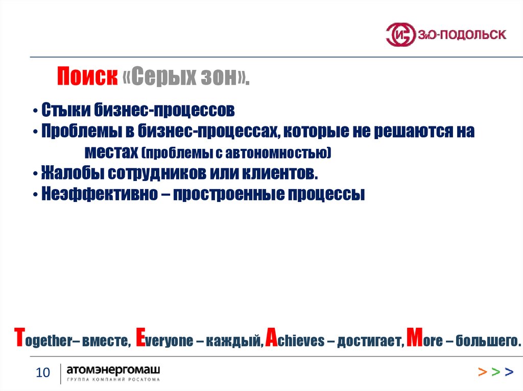 Поиск «Серых зон».• Стыки бизнес-процессов
