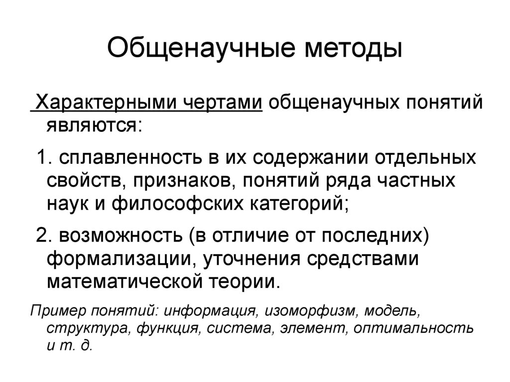 Общенаучные методыХарактерными чертами общенаучных понятий