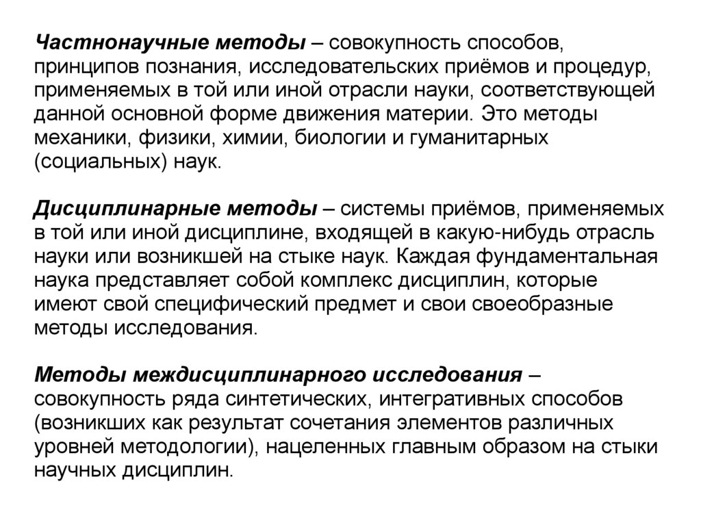 Частнонаучные методы – совокупность способов,принципов познания, исследовательских приёмов и процедур,