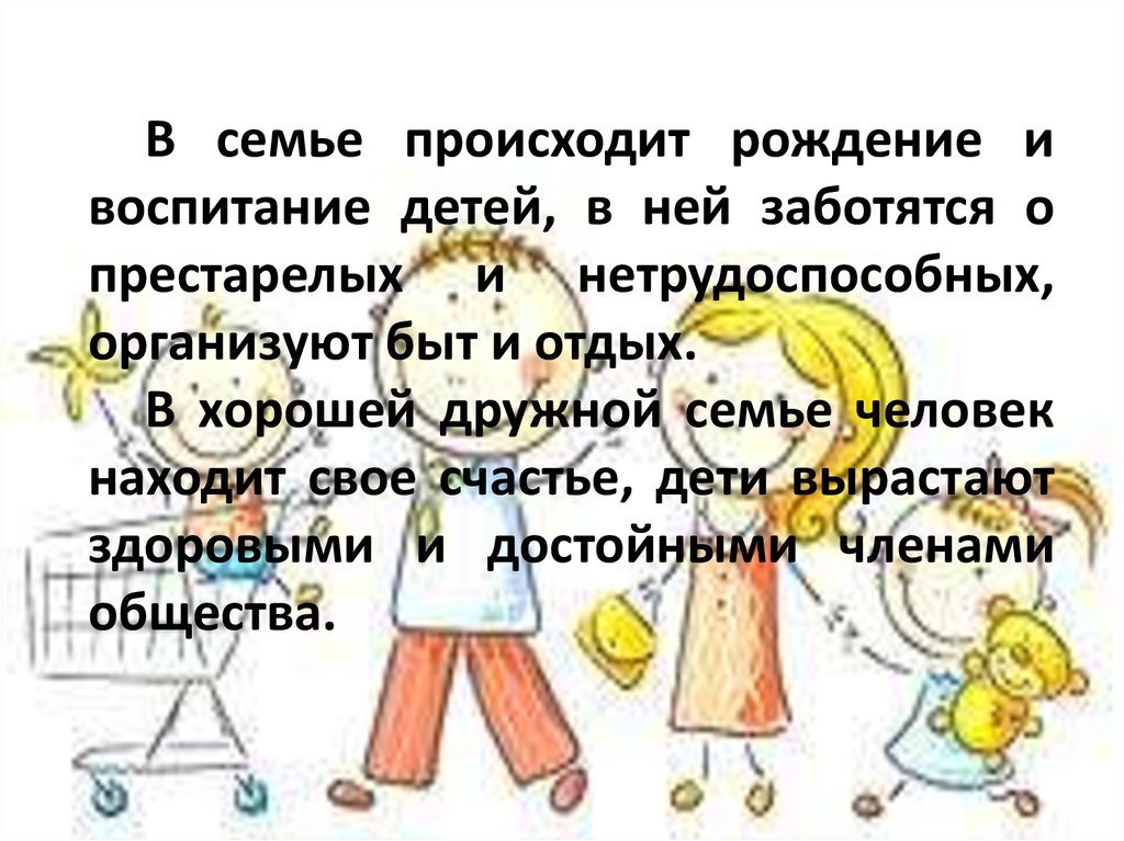 В семье происходит рождение ивоспитание детей, в ней заботятся о