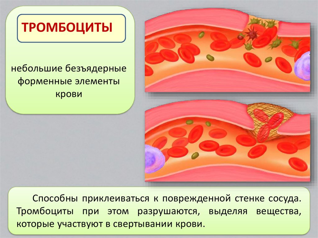 Тромбоциты при этом разрушаются, выделяя вещества,