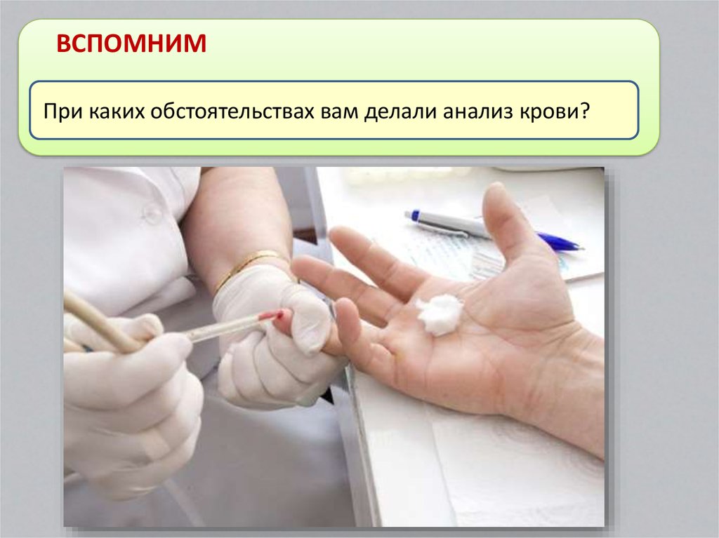 ВСПОМНИМПри каких обстоятельствах вам делали анализ крови?