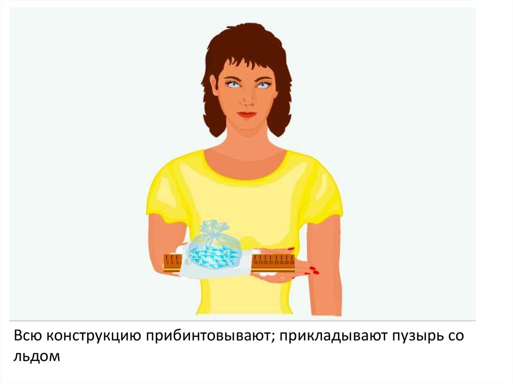 Всю конструкцию прибинтовывают; прикладывают пузырь сольдом