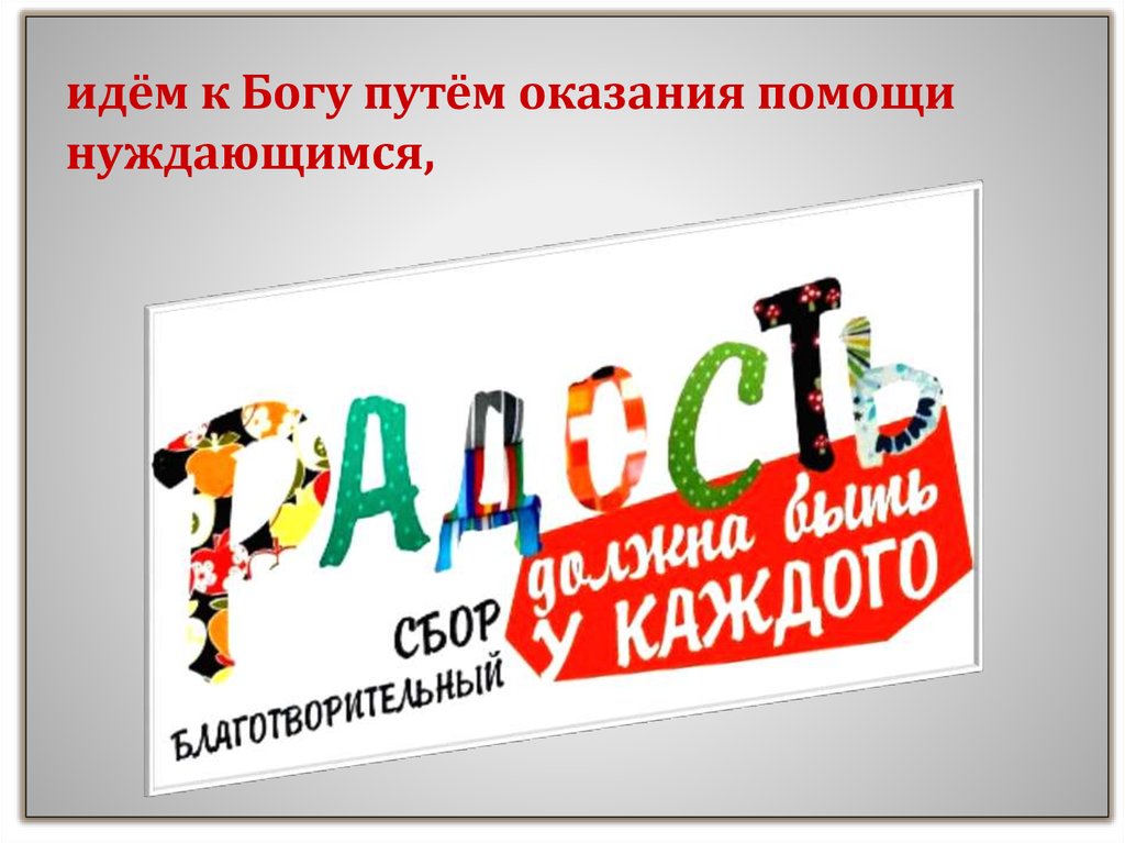 идём к Богу путём оказания помощинуждающимся,