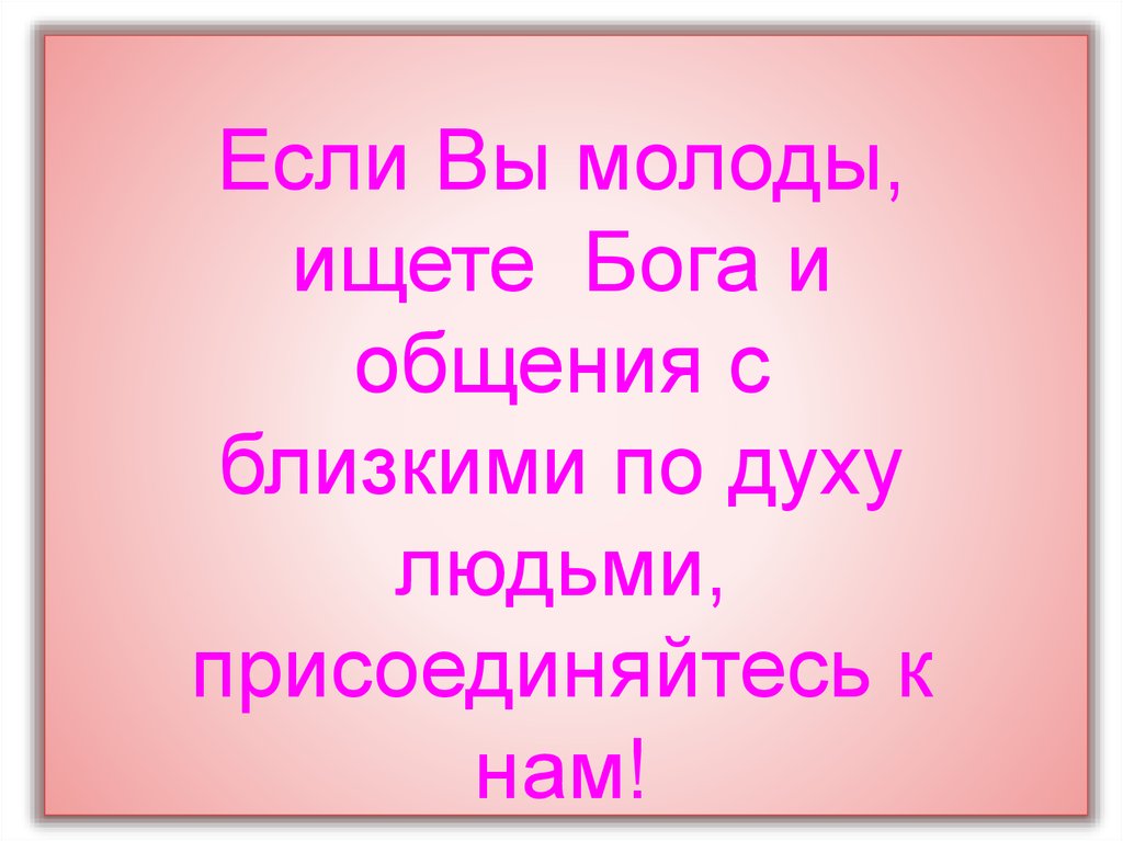 Если Вы молоды,ищете Бога и