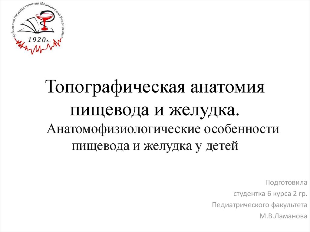 Анатомо-физиологические особенности пищевода и желудка у детей