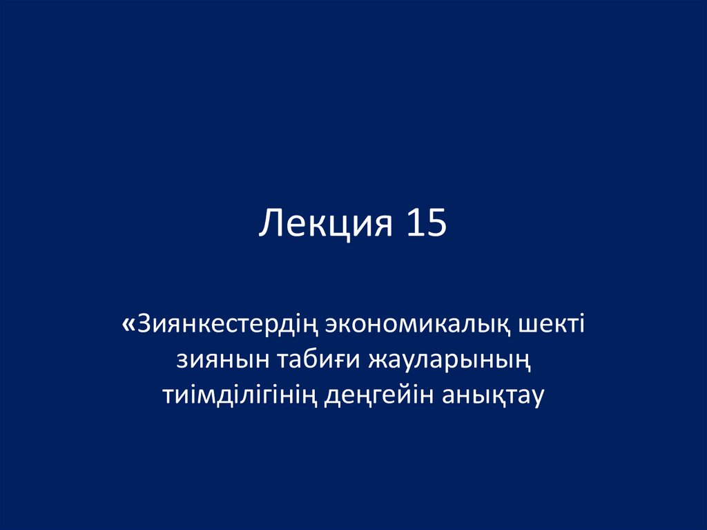 Зиянкестердің экономикалық шекті. Зиянын табиғи жауларының тиімділігінің деңгейін анықтау. (Лекция 15)