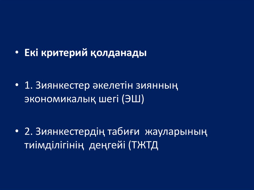 • Екі критерий қолданады• 1. Зиянкестер әкелетін зиянның