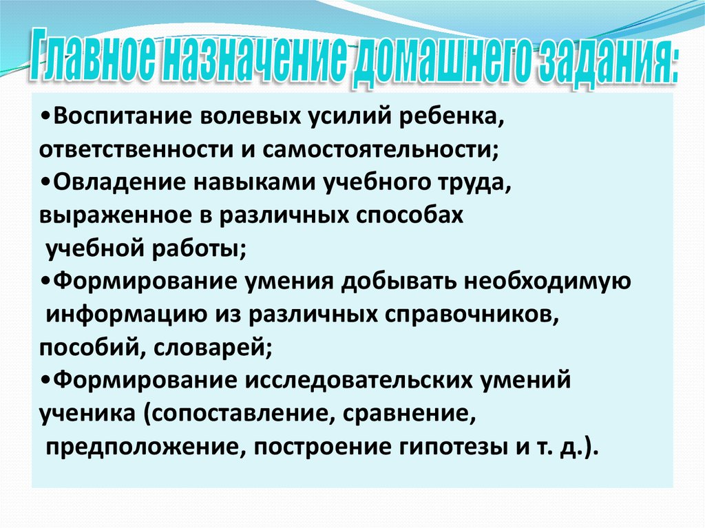 •Воспитание волевых усилий ребенка,ответственности и самостоятельности;