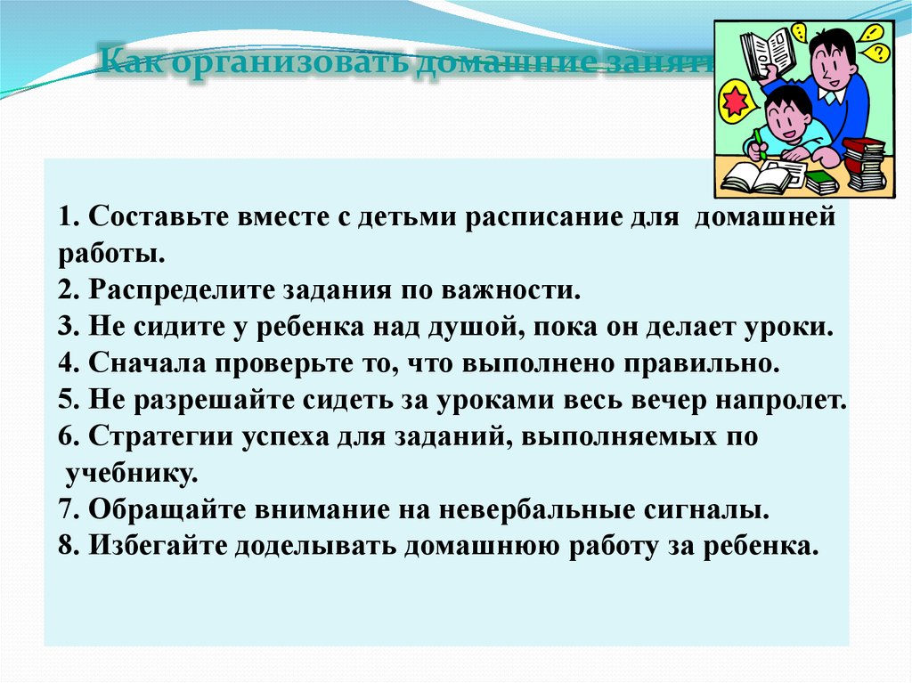 Как организовать домашние занятия?1. Составьте вместе с детьми расписание для домашней