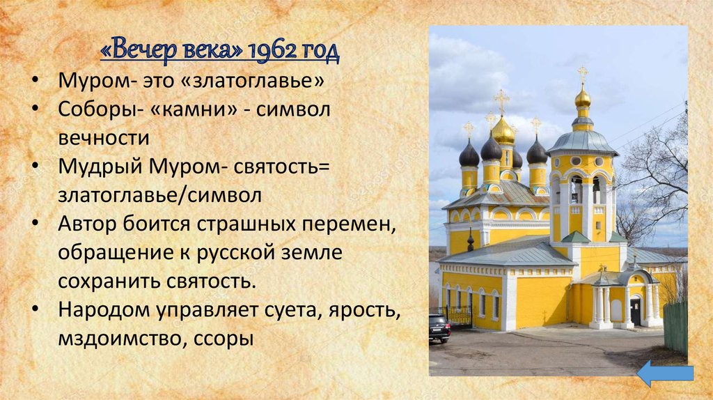 «Вечер века» 1962 год• Муром- это «златоглавье»