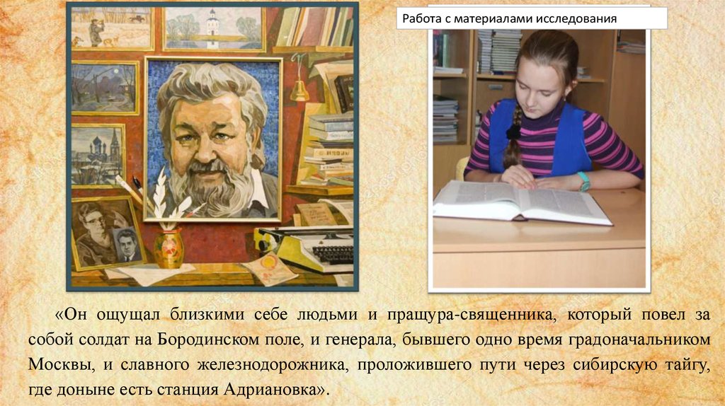 Работа с материалами исследования«Он ощущал близкими себе людьми и пращура-священника, который повел за