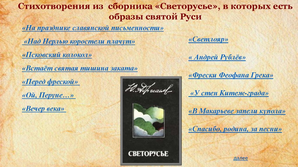 Стихотворения из сборника «Светорусье», в которых естьобразы святой Руси
