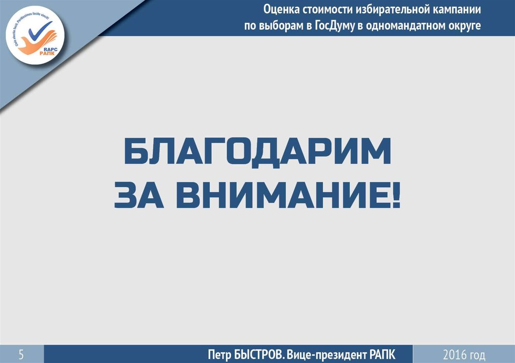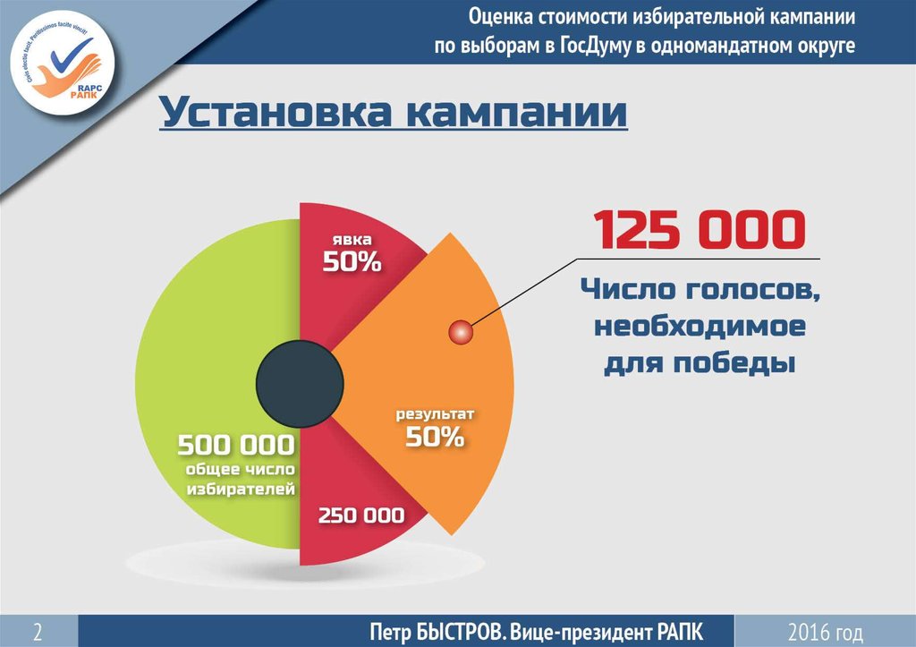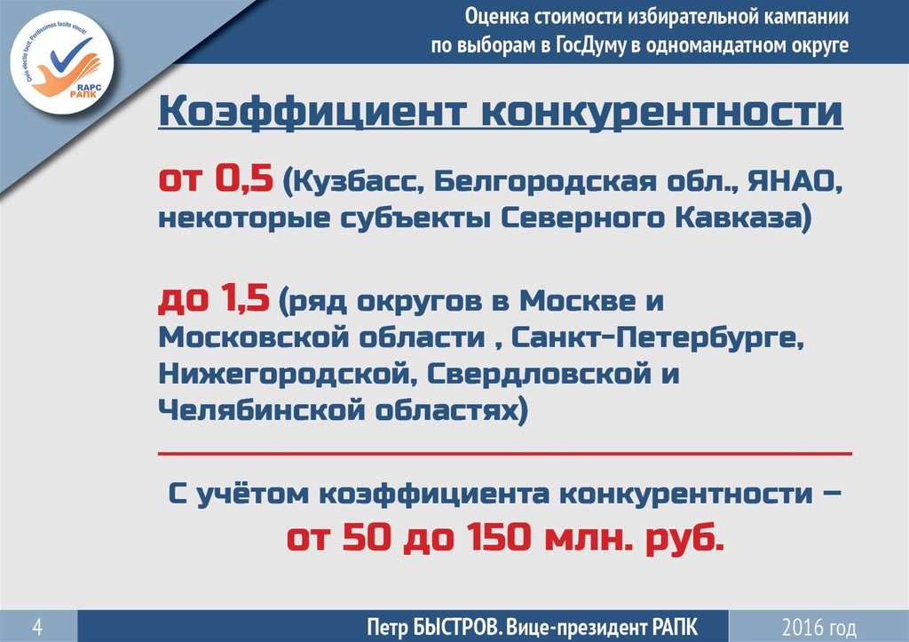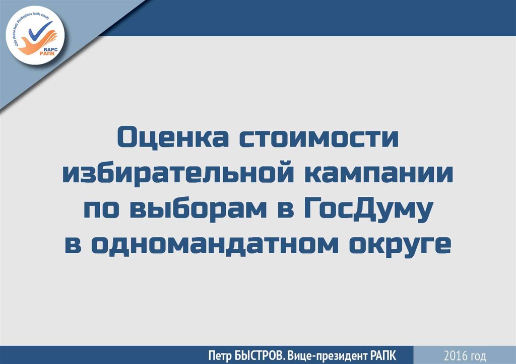 Оценка стоимости избирательной кампании по выборам в Госдуму в одномандатном округе