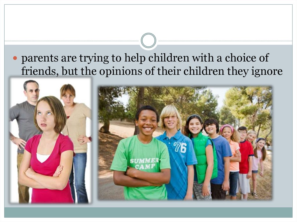 parents are trying to help children with a choice offriends, but the opinions of their children they ignore