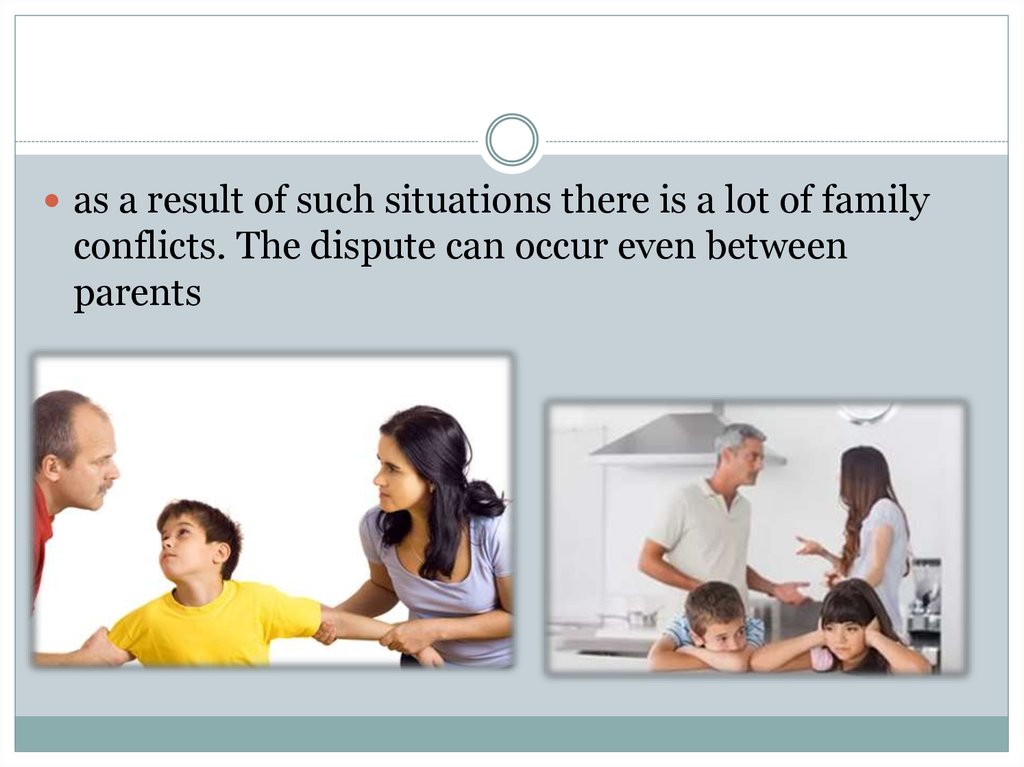 as a result of such situations there is a lot of familyconflicts. The dispute can occur even between