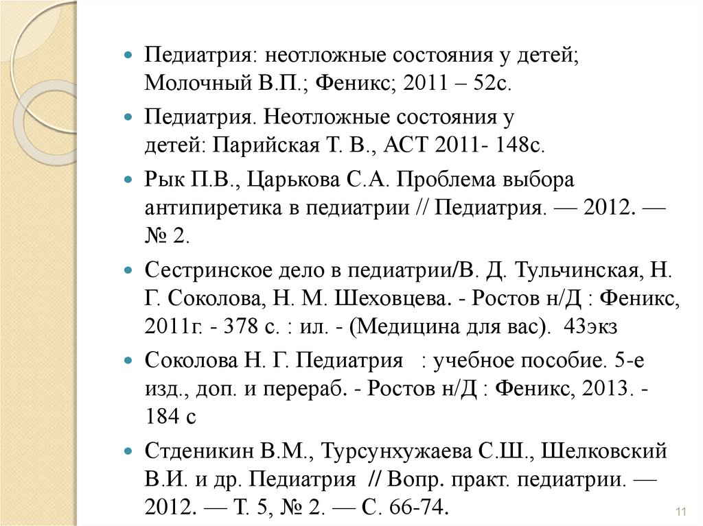 Педиатрия: неотложные состояния у детей;Молочный В.П.; Феникс; 2011 – 52с.